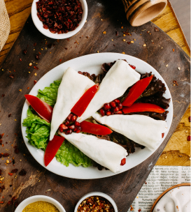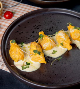 Склад: кур. грудка 100г; горіх волоський. 60г; вода 20г; шафран 5г; оцет винний 1,5 ст. олія оливк. 2ст.л.; сіль, перець за смаком; хмелі сунелі 1ч.л.; часник 5г; цибуля ріпчаста 10г.